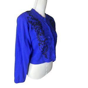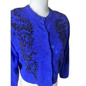 This is definitely A VINTAGE sweater. The design itself seems to be a 50s style. The sweater itself at my best guess is 80s however, a lined small cardigan with pearl buttons in the style and construction of this sweater is for sure a 50s type. Definitely I would guess 50 years old approximately.