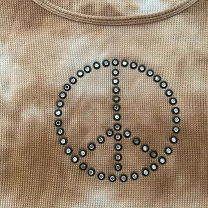VINTAGE INC BROWN TIE DYE Y2K PEACE LONG SLEEVE SHIRT SIZE L PETITE