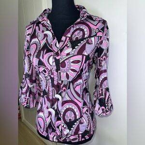 VINTAGE INC Women's Pink and Black Patterned Button Down Top