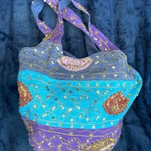 VINTAGE INDIAN SEQUINED EMBROIDERED BOHO BAG.