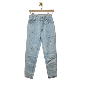 TAGS: iou, vintage, rare, denim, jeans, baggy, relaxed, straight leg, high rise, embellished, pearls, beads, maximalist