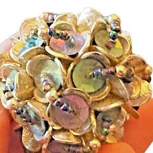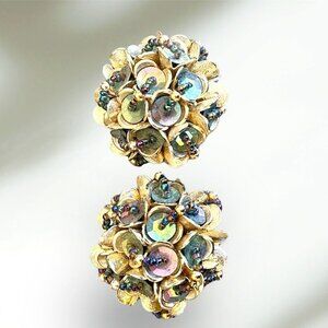 VINTAGE IRIDESCENT BEADED FLORAL CLIP ON EARRINGS UNIQUE 2 SETS PREOWNED