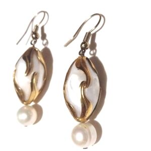 VINTAGE IVORY FAUX PEARL GOLD-TONE ACCENTS DROP DANGLE HOOK 1.5" EARRINGS