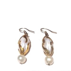 -Vintage Ivory Faux Pearl Gold-Tone Accents Drop Dangle Hook 1.5" Earrings.