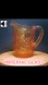 This vintage pitcher is made of carnival glass, known for its iridescent marigold color and pressed glass production technique.