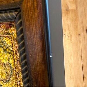 • Frame: Rich, dark wood with a twisted rope design along the inner edge