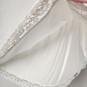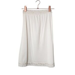 Up for consideration is a preowned vintage ivory lace-trim slip skirt. No tags whatsoever.