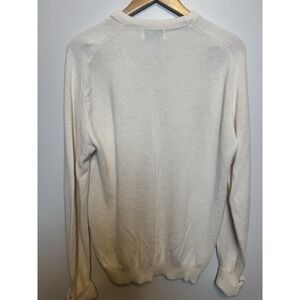 VINTAGE Izod Lacoste Sweater Mens Ivory Crocodile Knit V Neck 60s 70s Preppy