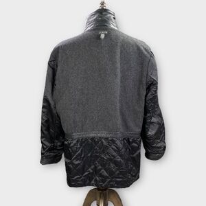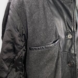 VINTAGE J Crew Jacket Mens Large Black Leather Wool Lined Quilted Heavy Coat