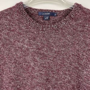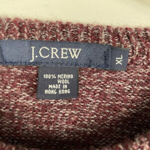 This is a vintage J.Crew sweater for men in size XL, made of 100% Merino wool in a tight-knit, heathered burgundy fabric. The sweater features a crew neck, long sleeves, and a classic pullover style. It is designed for business casual or everyday wear, with a preppy, classic look. The heavyweight fabric provides warmth and breathability, making it suitable for fall, winter, and spring seasons.