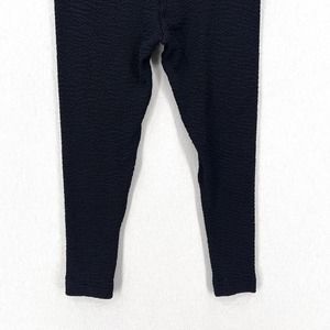VINTAGE JANTZEN Stretch Leggings Womens 10 Black Crinkle Knit Pull On Elastic
