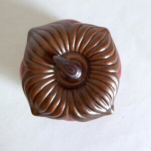 New, never used for its purpose, vintage, Japanese, Kotobuki brand, handcrafted, porcelain / ceramic, vegetable / fruit shaped, lidded teapot and corresponding container. The container can be used to store tea in. The lids are lifted from their stems. (See photos for details.) Items come from a pet and smoke free home.