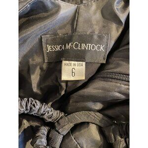 This vintage Jessica McClintock black party dress, featuring a 1990s goth fairy prom look, is a stunning choice for a special occasion. The mini dress exudes a dark and enchanting style, making it a perfect fit for a party or event with a unique ambiance. With its brand reputation and attention to detail, this dress is sure to make a statement and turn heads wherever you go. Perfect for size 6 women looking to add a touch of vintage glamour to their wardrobe.