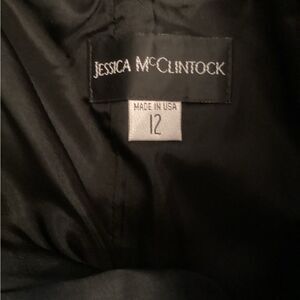 VINTAGE JESSICA McCLINTOCK SIZE 12 METALLIC GRAY SOUTACHE STRAPLESS MINI DRESS