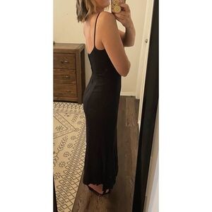 I’m in love with this dress. The pictures on the hanger don’t do it justice so I hope the real life pics help! Vintage spaghetti strap dress from Jessica McClintock with beautiful, small rhinestones across the neckline. Zips in the back. It is really effortless and so comfy to wear. The tag says 9/10, and the typical rule of thumb is to subtract 4 from vintage sizing, give or take. For reference, I am 5’2 and 130 lbs! The dress will show more heel/leg on a taller woman. :)
