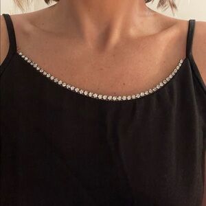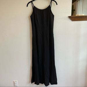 VINTAGE JESSSICA MCCLINTOCK SPAGHETTI STRAP RHINESTONE NECKLINE BLACK MIDI DRESS