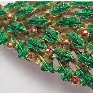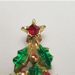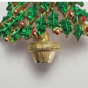 VINTAGE JJ JONETTE SIGNED Holly Leaf Christmas Tree Brooch Pin Collectible