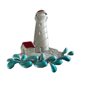 This vintage J&J lighthouse brooch is a beautiful piece of jewelry that would make a great addition to any collection. The intricate details on the pin make it a unique and special piece. The brooch is made of pewter.