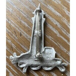 VINTAGE JJ LIGHT HOUSE SHIP DETAILED BROOCH STYLE PIN DETAILED PEWTER?