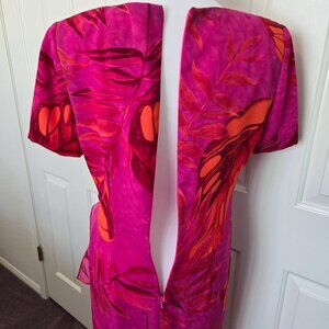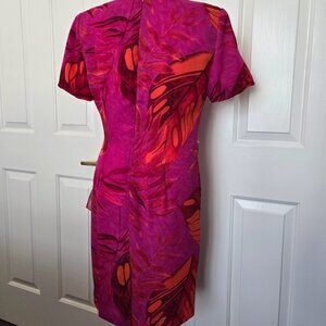 Vintage John Roberts Women's Dress size 10. The dress is fully lined and has a 21-inch back zipper that makes dress easy to slip on. It has a side tie that accents the tropical and colorful design. Like new condition.
