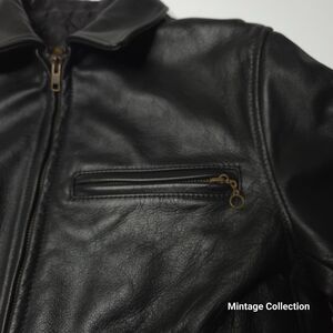 PREOWNED IN GREAT CONDITION VINTAGE JOHNSON LEATHERS MADE IN SAN FRANCISCO WOMEN'S BLACK FINE COW LEATHER MOTORCYCLE JACKET SIZE 8 (PLEASE SEE MEASUREMENTS ON THE LAST PHOTOS)