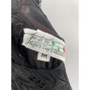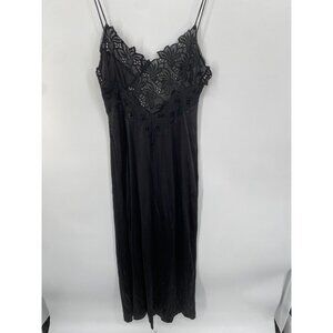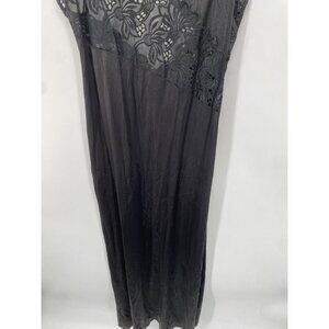 VINTAGE JOIE de VIE BLACK Night'n Day BLACK FRONT SLIT MEDIUM NIGHTGOWN FLORAL