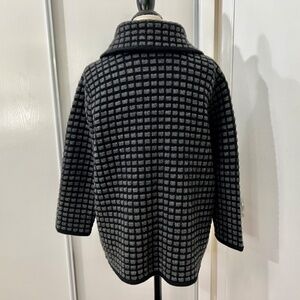 VINTAGE JONES NEW YORK 100% Merino Wool Cardigan Black/Grey Waffle Knit Size 1X - soft, warm and cozy!