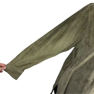 VINTAGE JONES NEW YORK GREEN SUEDE LEATHER ZIP UP COLLARED SHIRT JACKET SHACKET
