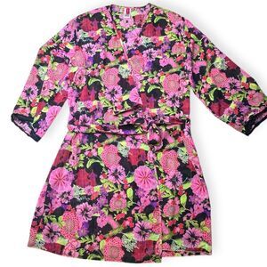 VINTAGE JOSIE by NATORI Women’s Multicolored Floral Chiffon Wrap Robe Coverup and Chemise Size Medium