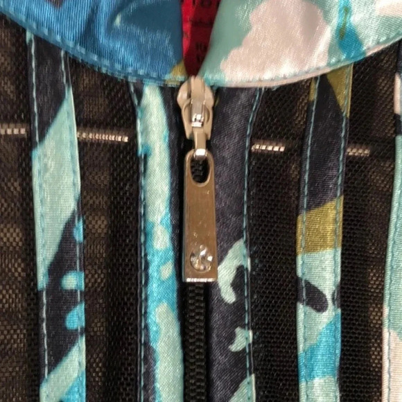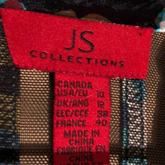 VINTAGE JS COLLECTIONS EUC WOMENS BLUE BLACK TOP SHIRT BLOUSE ZIP FALL SZ 10