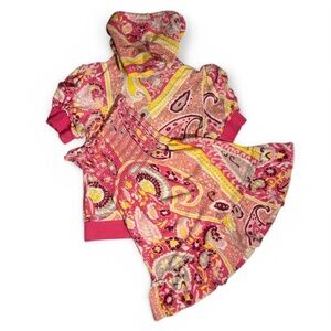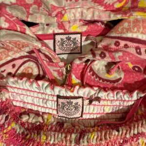 AUTHENTIC VINTAGE JUICY COUTURE TERRY CLOTH PINK YELLOW PAISLEY MATCHING TRACKSUIT JACKET DRESS MARTINIQUE HENLEY PRINTED