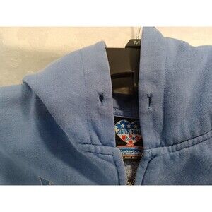 * The full zip design and blue color make it perfect for casual wear or activewear, with a theme that fits the rock music vibe.