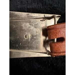 VINTAGE JUSTIN NICKEL SILVER HORSE BUCKLE W/TOOLED LEATHER WESTERN BELT
