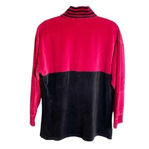 VINTAGE Jaclyn Smith - Red & Black Velour 1/2 Zip Pullover