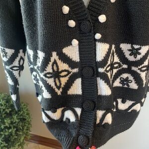 Vintage Jantzen sweater embroidered by hand black whites woman’s cardigan knit sweater