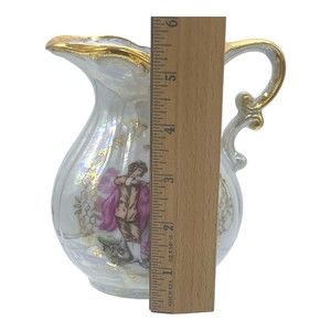 VINTAGE Japan Lusterware Portrait Of Courting Couple Pitcher and Bowl Gold Rim. Beautiful set that was well cared for. No chips or cracks. Only minor signs of wear, light/small areas of color or luster loss.