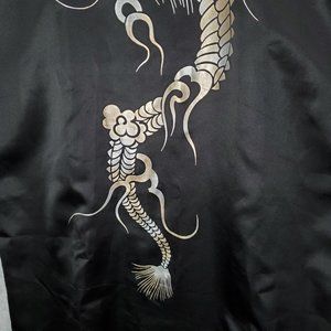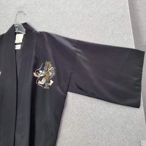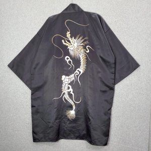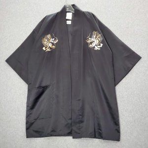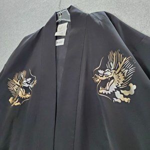 VINTAGE Japanese Dragons Men Kimono One Size Black Open Front Made In Japan