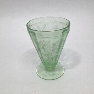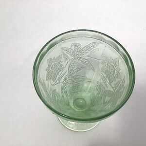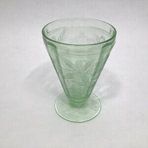 Vintage Jeannette Glass Poinsettia 1930 Green Depression Uranium Footed Tumbler no chips or cracks 4" x 3"