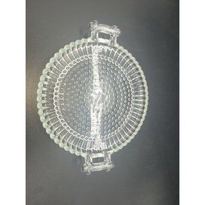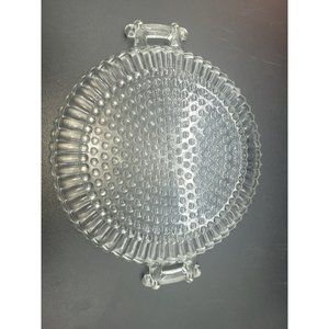 VINTAGE Jeannette HOBNAIL CLEAR GLASS ROUND SERVER/PLATE WITH HANDLES 8"