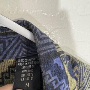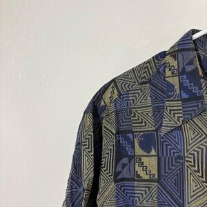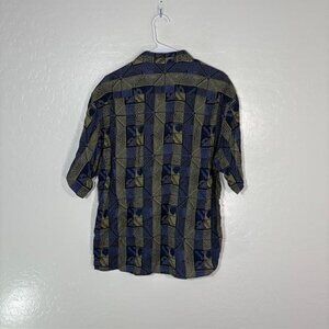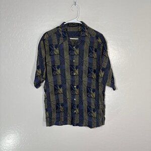 VINTAGE Jhane Barnes Shirt Mens Medium Blue Olive Geometric Abstract Cotton 90s
