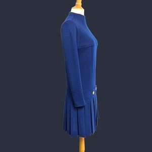 VINTAGE Jonathan Logan dress szS/M 60s Mod blue 70s 60's VTG pleats dropwaist