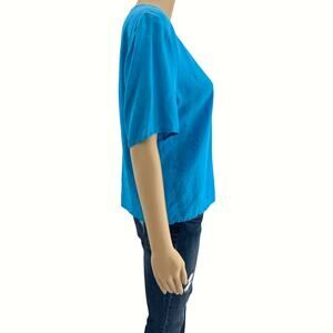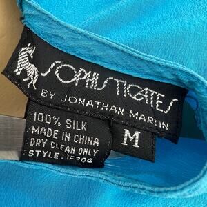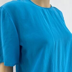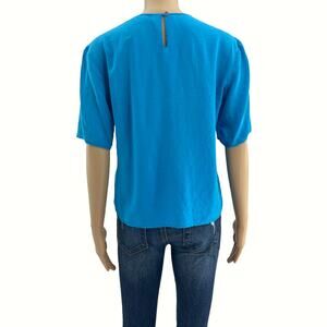 VINTAGE Jonathan Martin MEDIUM Sophisticates 80's Blue 100% SILK Short Sleeve Top Blouse