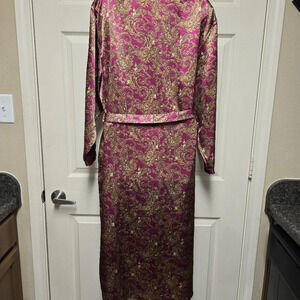 KATHRYN Robe Belted Pockets Floral Satin Vintage sz Small, Pink/Purple