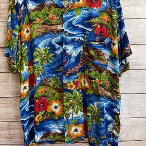 EXCELLENT CONDITION VINTAGE KENNINGTON LTD CALIFORNIA HAWAIIAN SHIRT IN TROPICAL PRINT