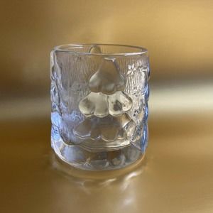VINTAGE KIG INDONESIA Holiday Christmas Embossed Glass Cup Trees Stars Wool Snow.