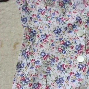 VINTAGE KNAPP STUDIO Lightweight Long Tunic Tailored Long Sleeve Button Up Floral Blazer Blouse Women Small