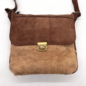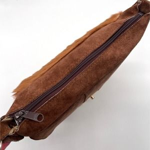VINTAGE Kangaroo and Suede Shoulder Bag Womens Brown Tan Fur 60s to 70s Era