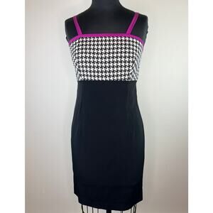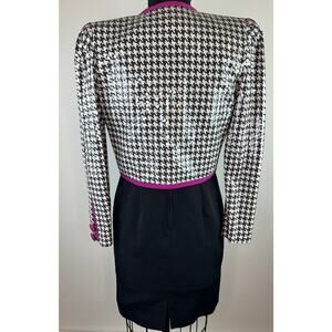 VINTAGE Karen Lawrence Black Pink Houndstooth Sequin Dress Blazer Set 4 VTG USA