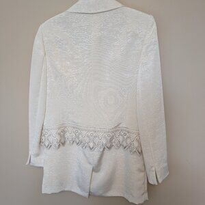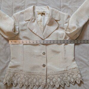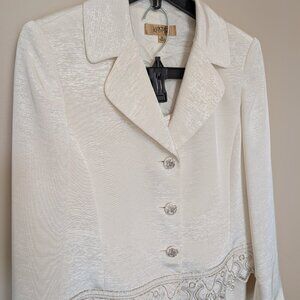 VINTAGE Kasper poly taffeta cream pencil skirt and blazer suit set EUC 10
