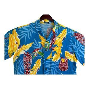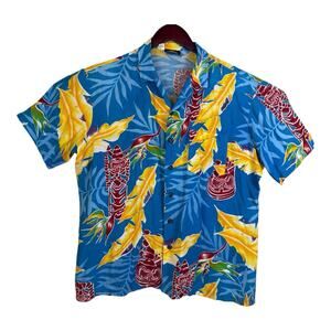 VINTAGE Kennington Hawaiian Shirt Mens Large Blue Palm Floral Button Up Camp